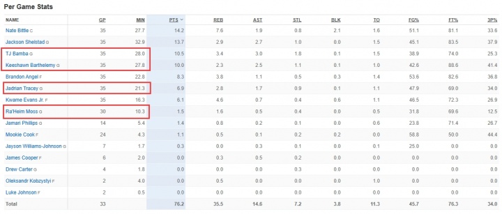 俄勒冈大学上赛季出场时间前5的后场球员里,有4人今夏离队。球队官网目前的名单上共有16人(不包括林葳),有5人担任后场球员,3人上赛季效力于俄勒冈。可以确定一个杆位位置的是Jackson Shelstad,他大二赛季杆位了全部35场赛事 ,场均13.7分2.9篮板球 2.7助功 ,入选大十联盟三阵。而Drew Carter和Jamari Phillips过去是擦边球员,前者两个赛季共出战13场赛事 场均2.2分钟;后者大一赛季共出战14场赛事 场均5.4分钟。