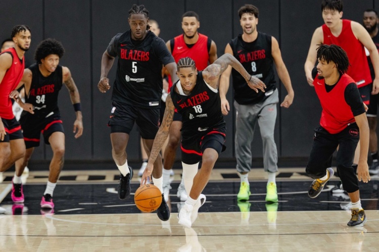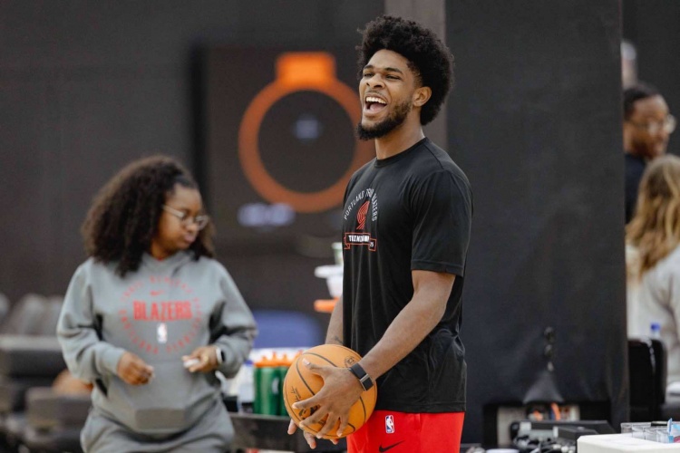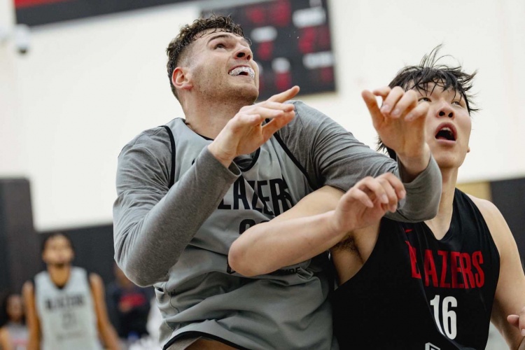 助威 !开拓者官方晒练习 照:杨瀚森和克林根剧烈 卡位