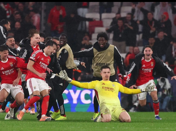 半个赛季的努力,本菲卡一方面在职业联赛 中努力追赶波尔图,一方面在欧冠赛场上争取创造奇迹:在前7场赛事 磕磕绊绊之后,今晨面对皇马英超比赛在线,一场酣畅淋漓的4-2,一场守门员第97分钟致胜球 的出色 戏码,属于狂人导演!——这一次,他没有滑跪,他已经有些年迈。这一次,他依然和身边的指导教练员,球员热血 庆祝。