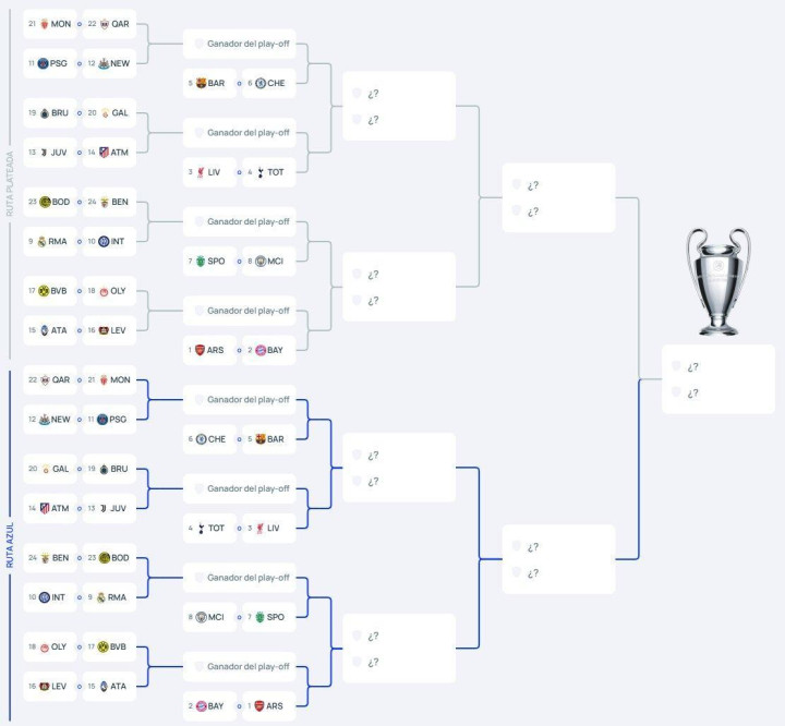 附加赛结束后,欧足联将在 2 月 27 日 进行统一抽签,直接抽出16 强、8 强以及准总决赛 的完整对阵路径。
