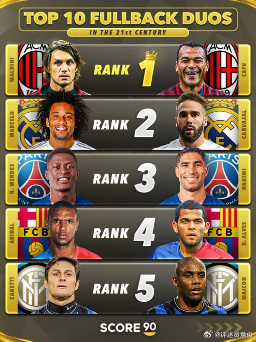 詹俊对此写道:外媒评选的21世纪以来最强的五对双边卫组合,大伙觉得如何? 欧冠奖杯荣誉第二对最多,英超直播在线高清(无插件)但论实力第一对太强了!如果只是比拼速度,第三对无人可及.............