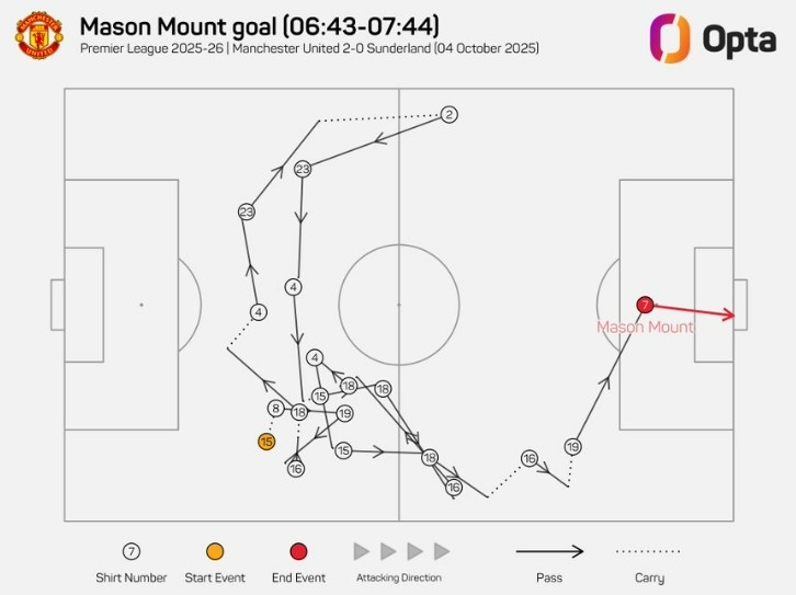 芒特得分 前经过18次传送球 ,为本赛季英超得分 中最多