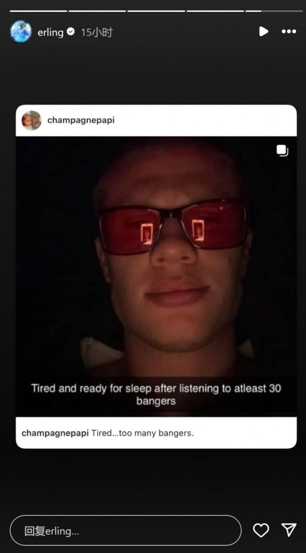 英超ds. 8月8日讯 曼城前场球员哈兰德更新社媒动态,与说唱歌手德雷克互动。 哈兰德现身加拿大说唱歌手德雷克的演唱会现场,他在社交媒体上晒出照片并配文:“听了至少30首劲歌热曲,累了准备睡觉。” 德雷克社媒晒出多张演唱会照片,其中包括哈兰德的这条动态截图,配文回应:“累了,太多劲歌热曲了。”哈兰德也转发了德雷克的动态。 英超ds.......