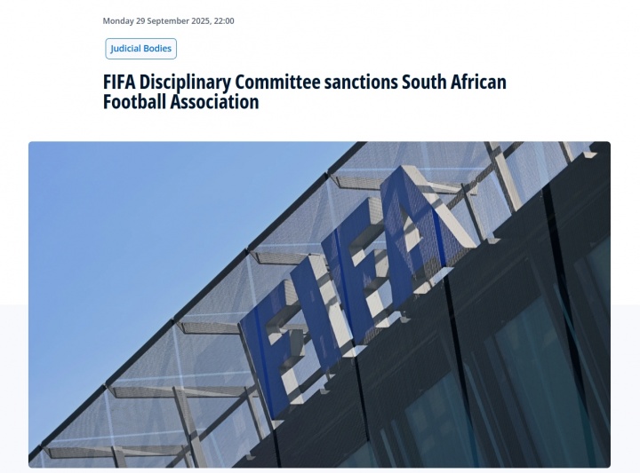 09月29日讯 国际足联纪律委员会宣布,由于南非足协在2025年3月21日2-0战胜莱索托的世预赛赛事 中派出不合规的球员莫科纳,南非队该场赛事 被判0-3负,且对南非足协处以1万瑞士法郎的罚款。据媒体消息,莫科纳在那场赛事 本应停赛。