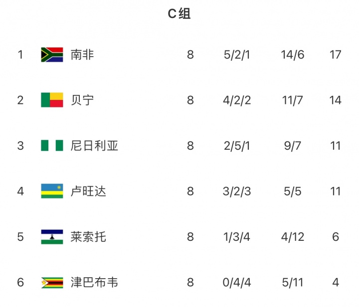 南非队目前排名非洲区C组第一,在被判负后将被扣3分,少5粒净胜球,掉至C组第二。